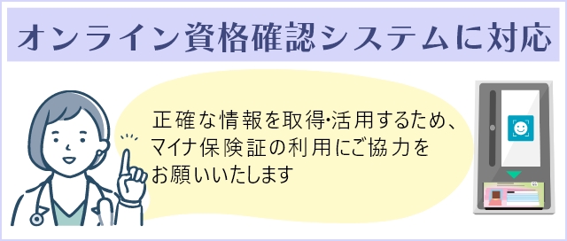 当院では、マイナンバーカードの機能を搭載したスマートフォン(スマホ用電子証明書)を利用した 「オンライン資格確認」 に対応いたしました。 これにより、スマートフォンで保険証として受付ができます。
